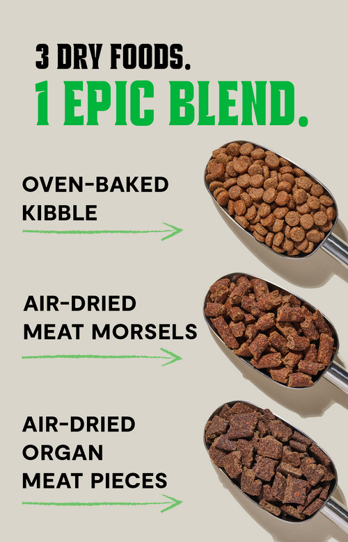 Calling all meat lovers! RawMix packs a protein punch with multi-protein blends of bone broth and freeze coated kibble, boosted with bonus chunks of freeze dried raw. Ancestral nutrition inspired by the wild, this complete and balanced meal is offered in both grain- and legume-free and ancient grain options. Dedicated formulas for large breeds are available.