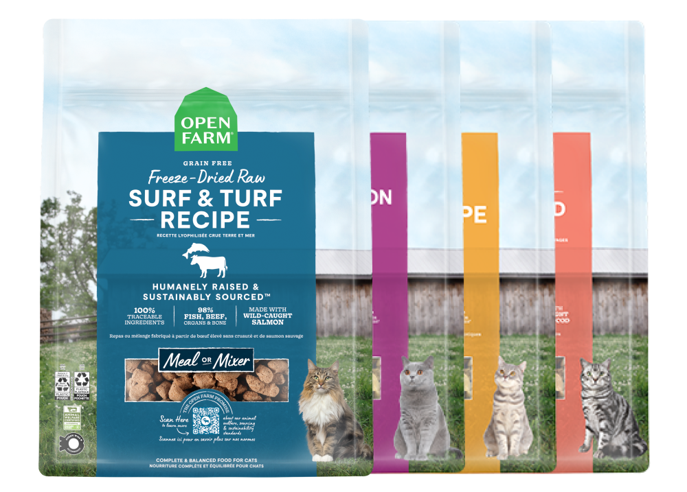 “My cat loves variety and absolutely adores the wet and dry foods from Open Farm. Great quality you can see and my cat can taste.”