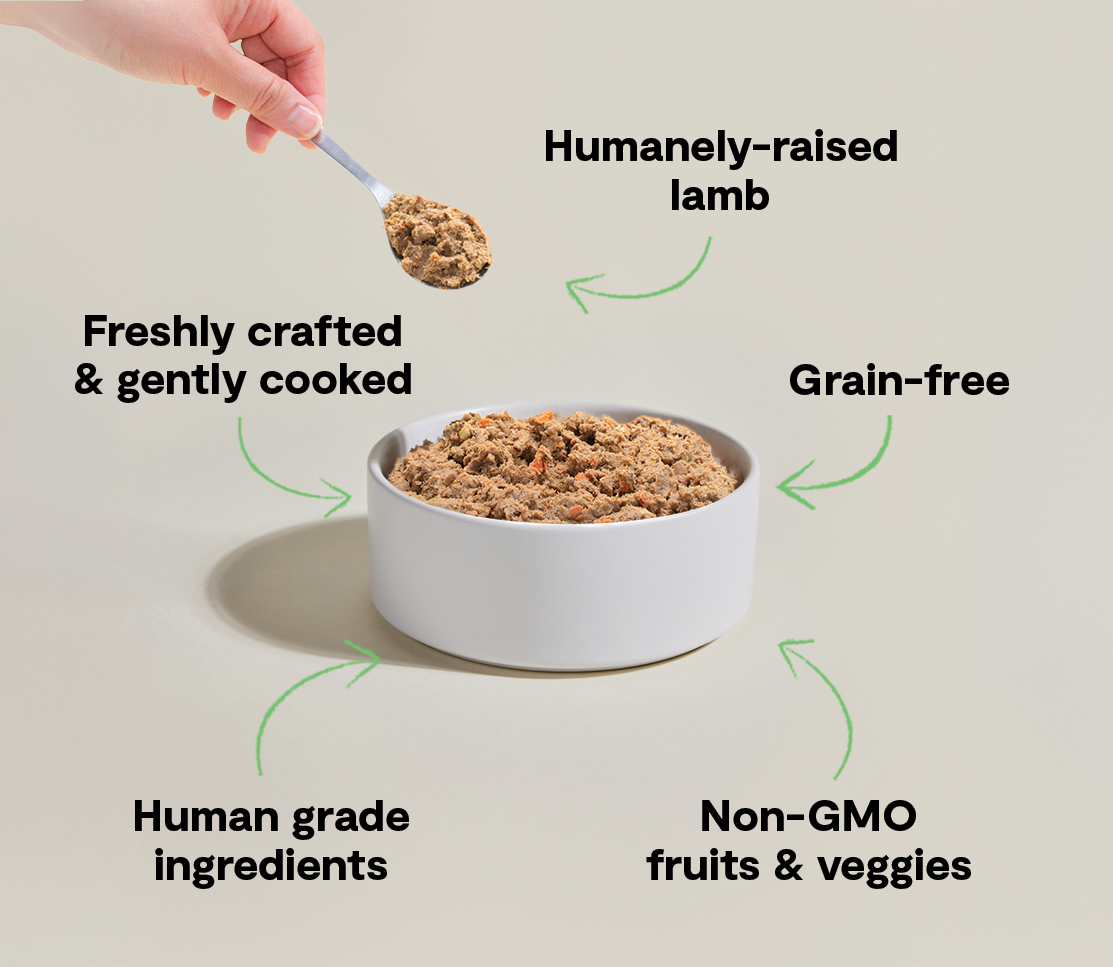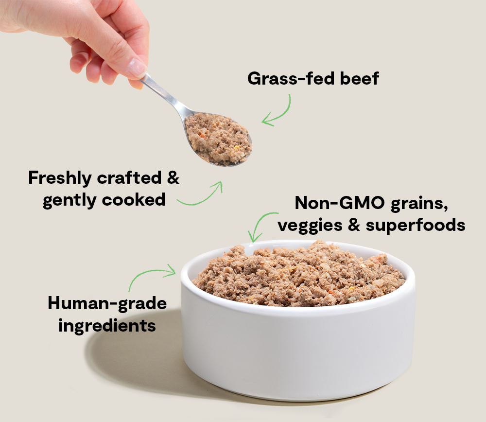 The quality of food going into your dog's bowl is the foundation of any meal plan. You'll find 'human-grade' and 'all-natural' labels on many fresh food recipes, but we believe that doesn't give pet parents the full picture. We believe that better ingredients from better sources results in better nutrition, that's why we use 3rd party certified proteins and non-GMO fruits, veggies, and superfoods – all vet approved and 100% traceable down to geographic origin, safety test results, and more.