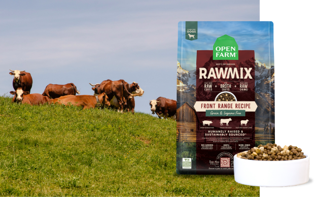 Every Open Farm product has an animal welfare story. Our RawMix has 3 humanely raised animal proteins – pork, grass-fed beef and lamb raised on pasture with plenty of space to roam according to G.A.P. standards.