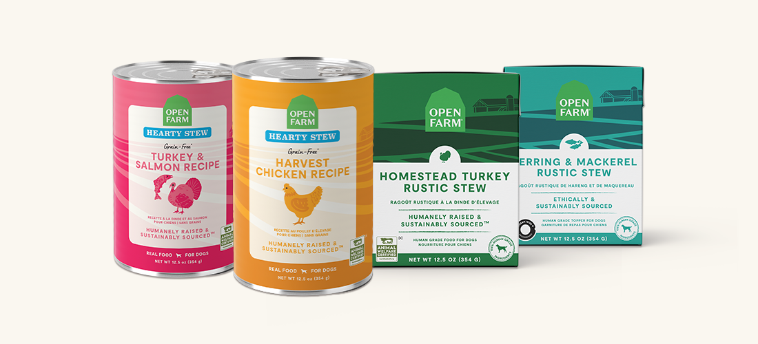 Discover the Benefits of Quality Wet Dog Food with Open Farm. Wet dog food is an important source of nutrition and hydration for dogs, and Open Farm has created a line of wet foods that contain everything a dog needs to live a healthy, happy life. Combine our human-grade wet dog food with high-quality dry food or freeze-dried foods as a topper, or give your dog some of Open Farm’s delicious treats as a reward. Your dog deserves nothing but the finest foods in its bowl, and Open Farm is your source for the most delicious and nutritious wet dog food on the market.
